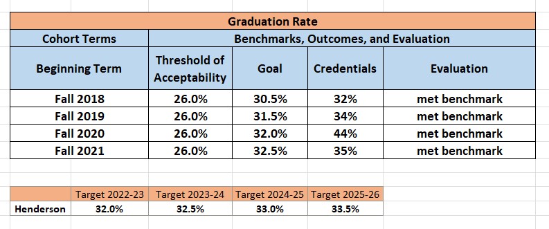 | Beginning Term | Threshold of Acceptability | Goal | Graduation Rate | Evaluation |