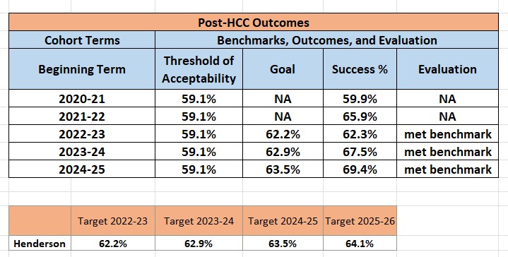 Criteria: Post-KCTCS Outcomes, a performance measure in the 2022-26 HCC Strategic Plan.